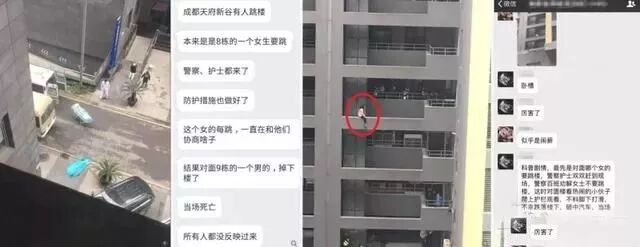 當時(shí)氣氛非常緊張,120救護人員已經(jīng)在樓下做好準備,以防不測,附近的樓層陽(yáng)臺上,也有很多“看熱鬧”的人群,緊張觀(guān)望。 不料就在此時(shí)! 8棟樓的正對面,9棟樓上,一名男子突然從高樓上墜下,砸中樓下停放的一輛汽車(chē),腦漿迸裂,當場(chǎng)死亡。據目擊者稱(chēng),這名男子也是現場(chǎng)看熱鬧的人之一,由于爬上陽(yáng)臺后,腳下打滑,不小心失足摔下,并非有意想跳樓。事發(fā)后,8棟樓上的輕生女子,似乎感到害怕,放棄了跳樓打算。